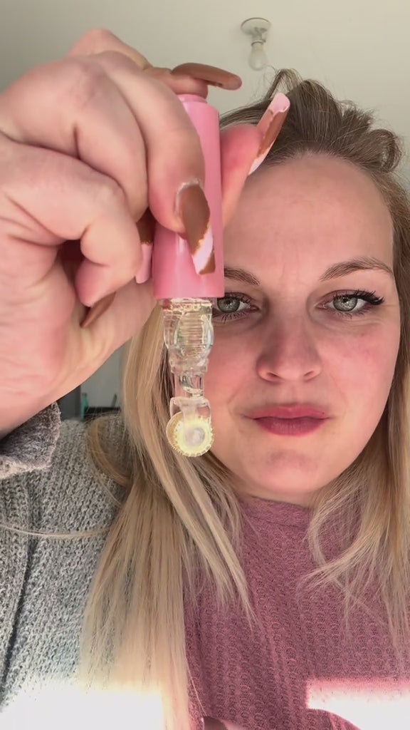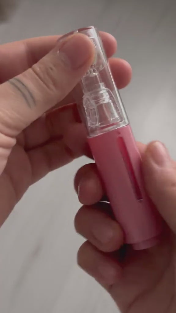 1. Remplissez le flacon avec l’huile de soin fournie ou votre sérum lèvres préféré.